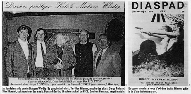La dernière « personnalité », Joëlle Aubron, membre d’Action directe, condamnée plusieurs fois à perpétuité en 1994 pour meurtre, appuie cette action du fond de sa geôle ; on connaît ses rapport avec le druide d’extrême-droite Yann-Ber Tillenon, l’« idéologue des skinheads » (d’après Jean-Yves Camus et René Monzat, Les Droites nationales et radicales en France, Presses universitaires de Lyon, 1992, p. 304. Ces derniers précisent qu’il fit partie du Cercle Horizons (ex-cercle Cadoudal) avec des membres du FN, des néo-nazis et des traditionalistes catholiques comme Ronald Secher, auteur de la bande dessinée sur l’histoire de la Bretagne publiée par « Ouest-France ». Ces informations n’ont jamais été démenties. René Monzat évoque « un très étrange document : au printemps 1983, sur la couverture du deuxième numéro de « Diaspad » (la revue de Tillenon) on voit un homme debout derrière une femme, tous deux torse nu. La femme, en position de tir, tient un revolver, l’homme lui tient les bras et guide son geste... L’homme, c’est Tillenon lui-même. Le visage de la femme n’est pas identifiable car la photo a été retouchée. Tillenon assure, en 1989, que cette femme n’est pas Joëlle Aubron. Cette précaution n’est pas superflue car, depuis la parution de cette photo, Joëlle Aubron, membre d’Action directe, a commis un attentat homicide et est inculpée pour d’autres assassinats ou tentatives d’assassinat. (« Enquête sur la droite extrême, p. 78). C’est en pleine connaissance de cause que l’association Bemdez et les autres revendiquent la caution de Joëlle Aubron. Quelle gauche ? Quelle droite ? Quel pacifisme ?