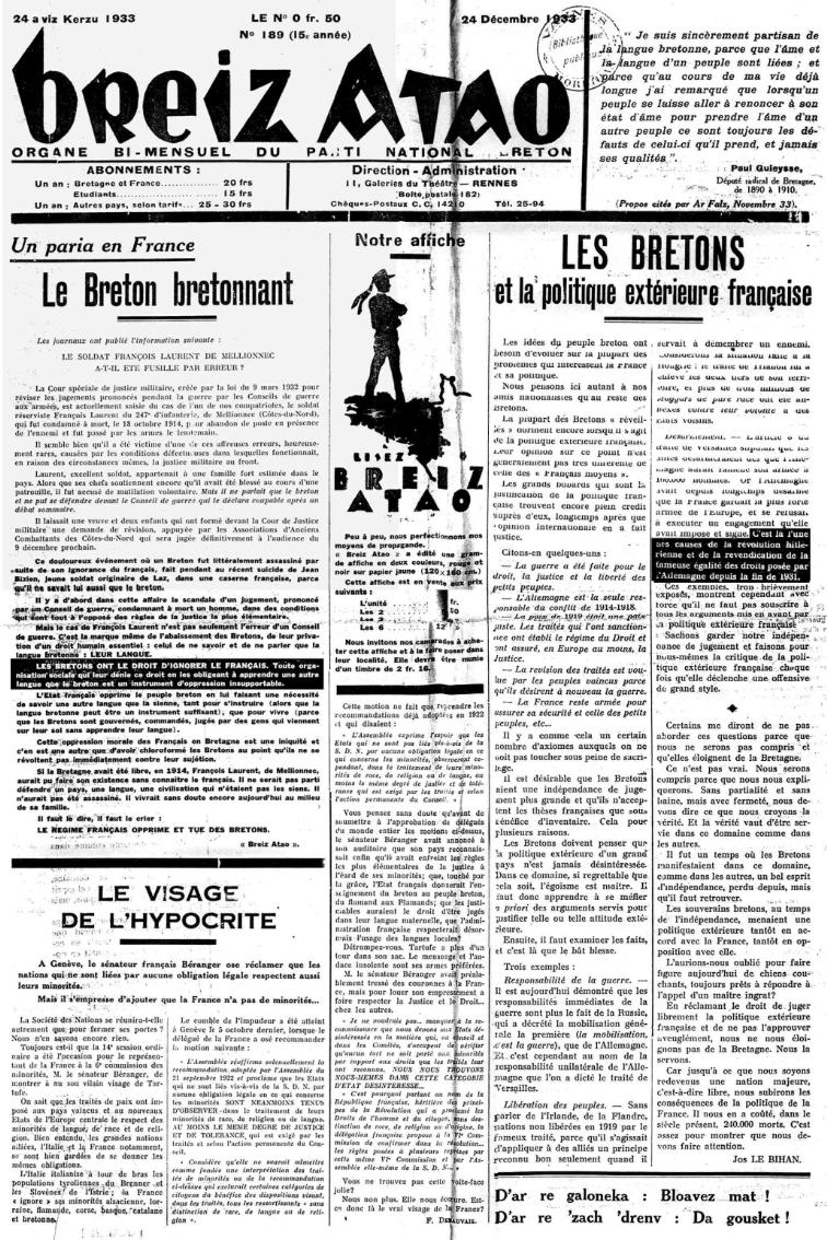 Breiz Atao n° 189, 24 décembre 1933, Une