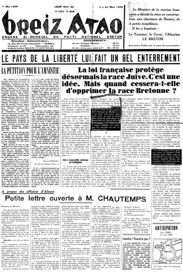 Breiz Atao n° 328, 7 mai 1939, Une